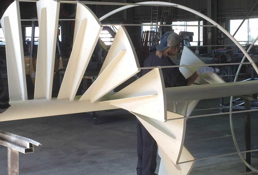 住宅、商業ビル、店舗や工場などの建築鉄骨、重量鉄骨工事、螺旋階段やストリップ階段などの鉄骨階段皆様工事、鉄骨バルコニーや鉄骨ガレージなど軽量鉄骨工事、手摺や門扉などの総合建築金物工事など。